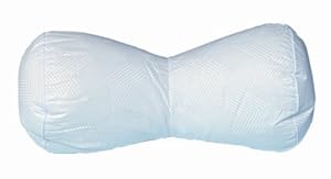 Unique hourglass design provides head and neck support. helps align the spine and promotes proper sleeping posture. alternative uses include sacral or knee support. 100% hypoallergenic polyester fiberfill with white polyester/cotton self-cover. machine washable. size: 21” x 7” with 5” center.