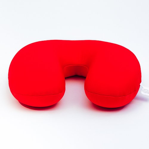 - TWO soft, U-shaped neck pillows: Red and Blue