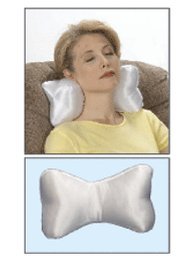 Description : This ergonomically shaped pillow cradles your neck and head in comfort. This neck support pillow keeps your head, neck and spine properly aligned to ease stress, strain and pain in your neck and shoulders. Provides firm comfortable support and won't let your head tilt or fall while napping or sitting. Excellent for car, plane, bed, recliner or easy chair. Made with a silky polyester-satin cover. Machine washable. Imported. 13"L.