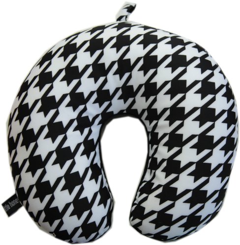 The HOUNDSTOOTH TRAVEL PILLOW is BLACK AND WHITE with BLACK velour backing. Each pillow has a fabric loop that attaches to your luggage or handbag for easy transport.