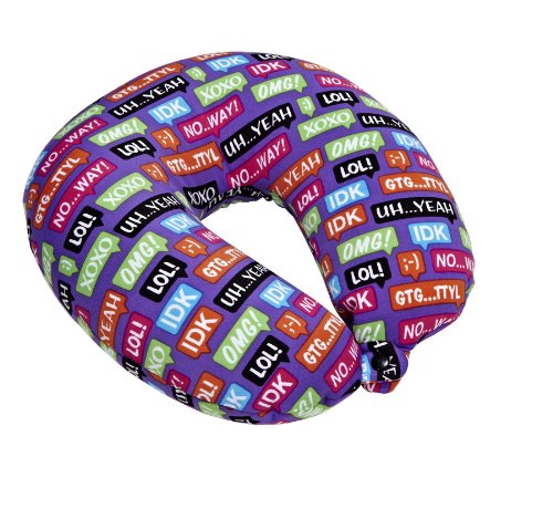 - Texting phrases on fun, trendy purple pillow