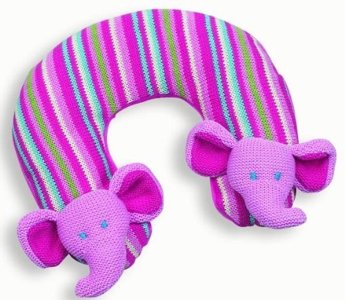 Description : Cuddly Knit pink elephant travel pillow will keep baby safe and comfortable by providing a place to rest her tired head in the car seat or stroller.