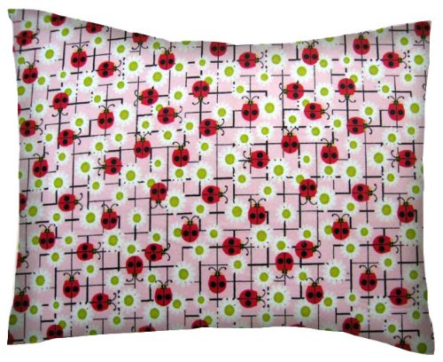 Description : Twin pillow case. Made of an all cotton flannel fabric. Side opening. Features the cutest lady bugs print. (matching sheets available on 'buy baby sheets' page).