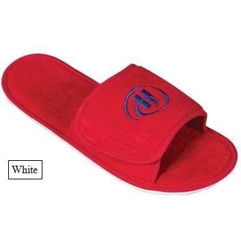 Description : Terry Town Terry Velour Slippers Small - White. SV7002-S-White. Relaxation & Travel. This super soft velour slippers have a Velcro closure for easy personalization. Skid resistant white TPR sole and machine washable. Made of 100 percent cotton terry velour fabric.