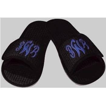 Description : Terry Town Waffle Weave Slippers Medium - Black. SW7001-M-Black. Relaxation & Travel. These soft terry cloth slippers have a Velcro closure for easy personalization. Skid resistant black TPR sole and machine washable. Made of 100 percent cotton terry fabric.