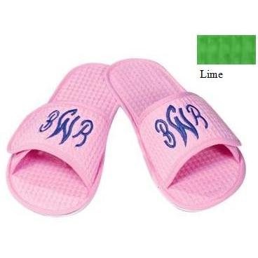 Description : Terry Town Waffle Weave Slippers Small - Lime. SW7001-S-Lime. Relaxation & Travel. These soft terry cloth slippers have a Velcro closure for easy personalization. Skid resistant black TPR sole and machine washable. Made of 100 percent cotton terry fabric.